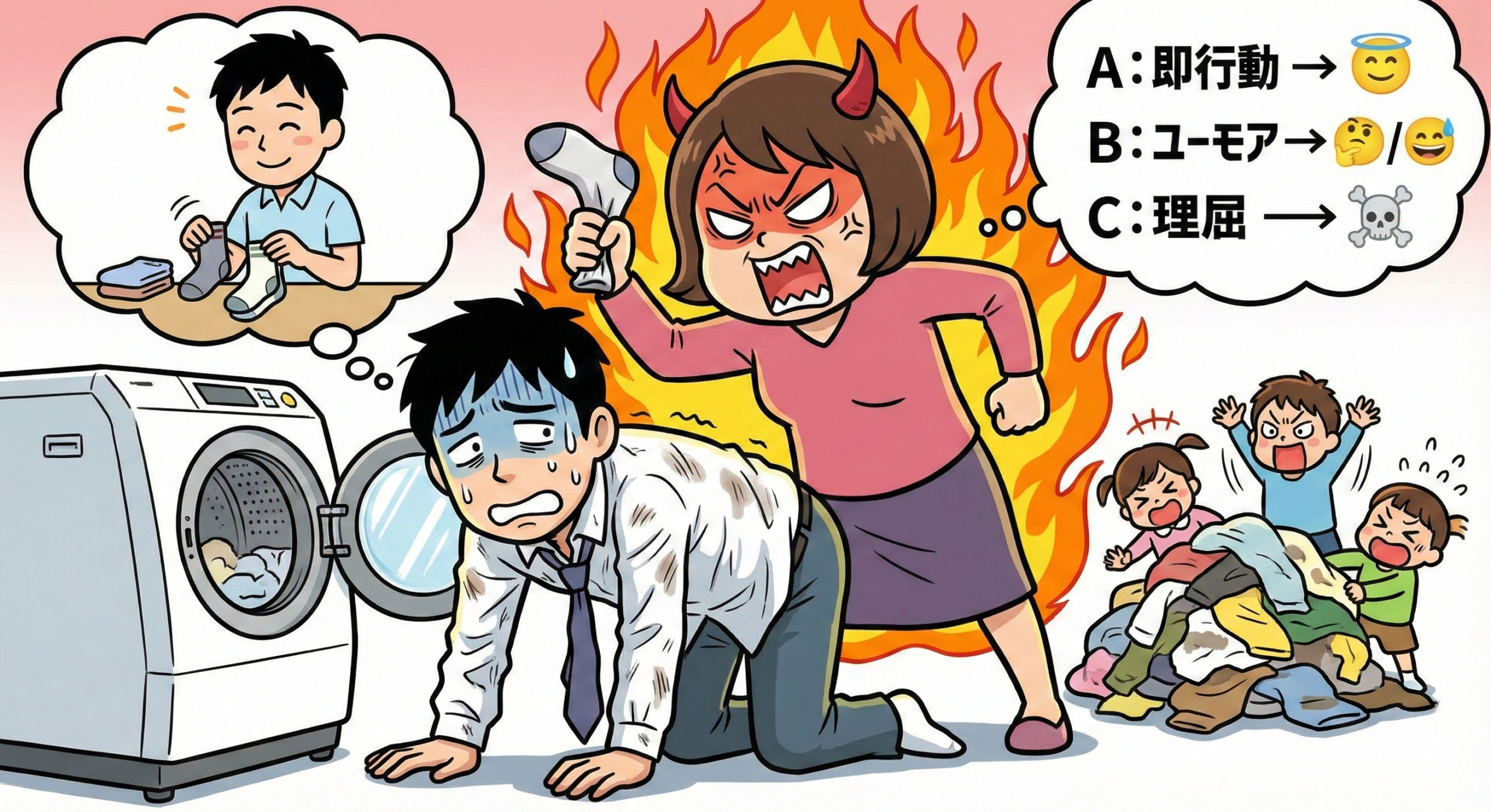 今回は、この洗濯機前の修羅場を無傷で切り抜けるための、3児パパ流・生存戦略(返し方)を解説します。